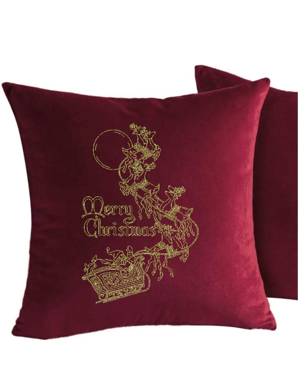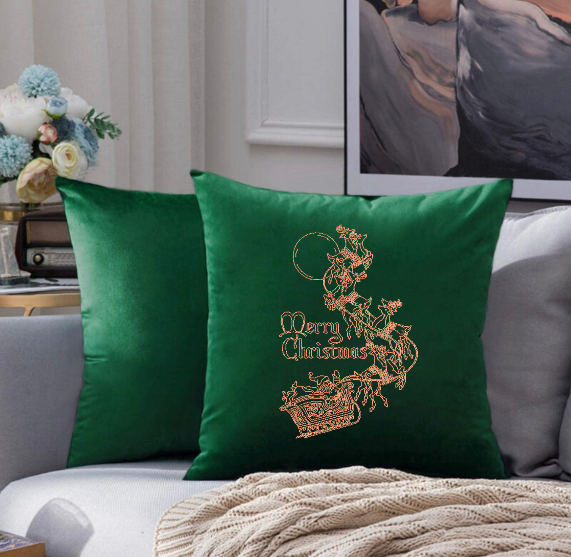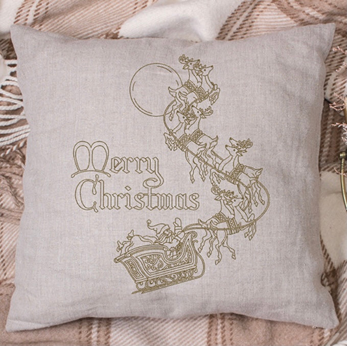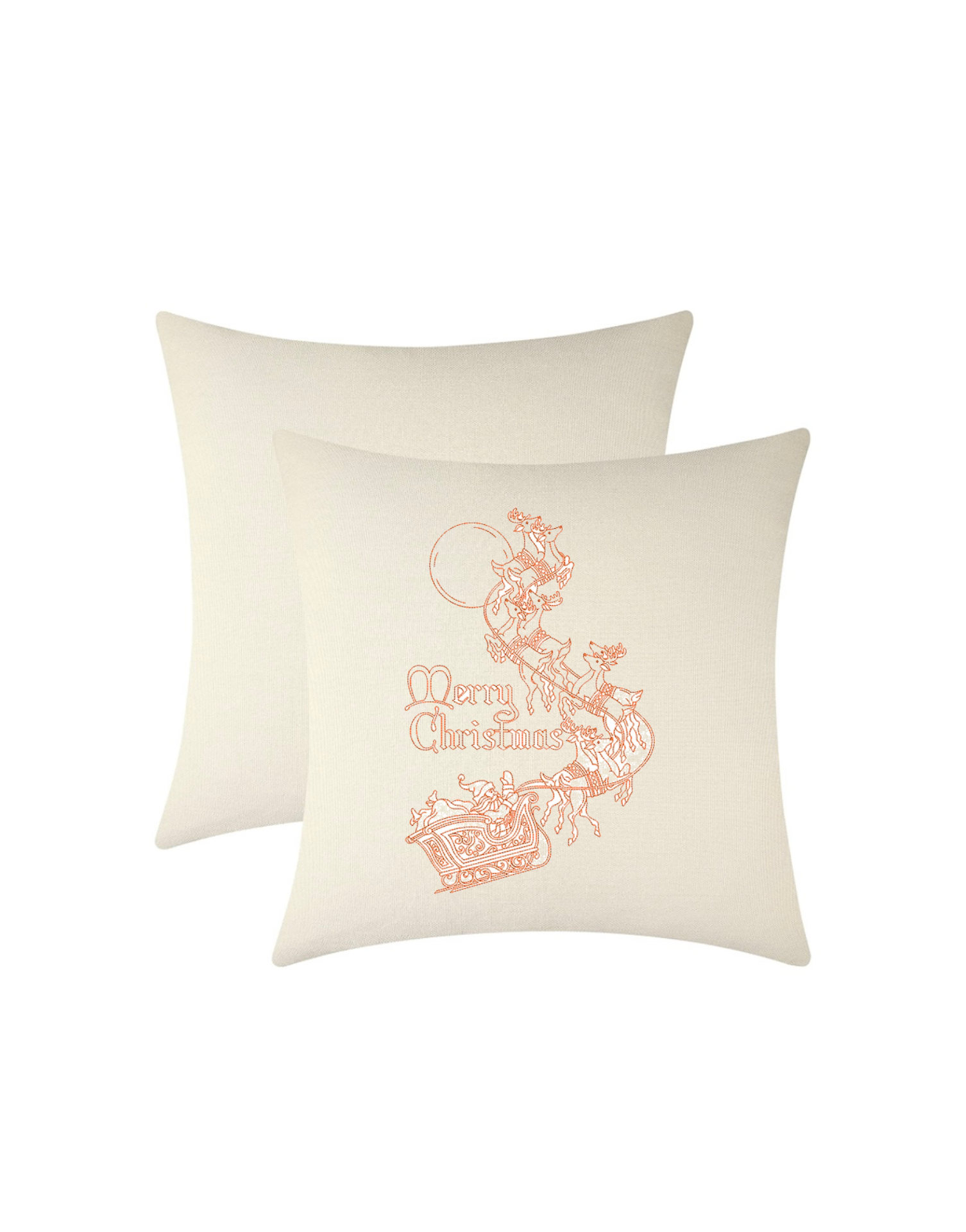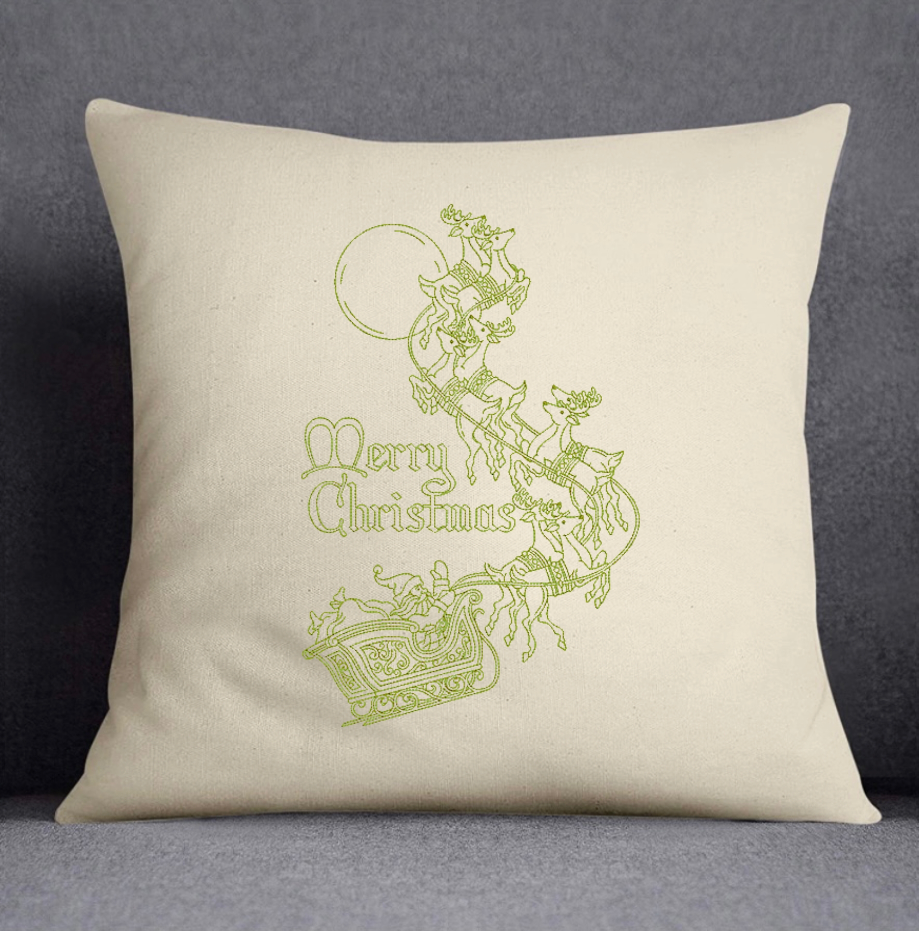 Santa’s Sleigh Ride Embroidered Throw Pillow Cover 18" x 18” Cotton Accent Pillow Cover Zip Closure.