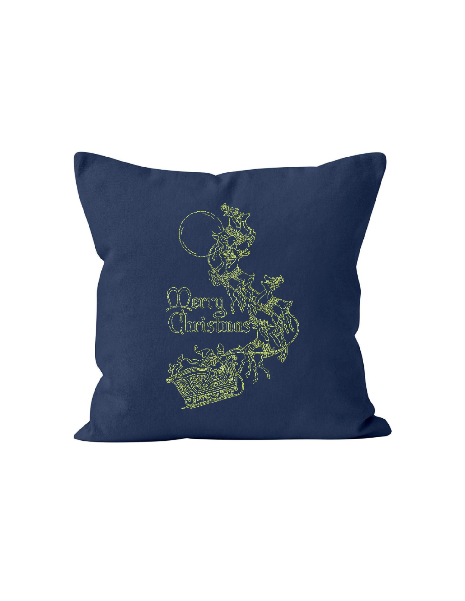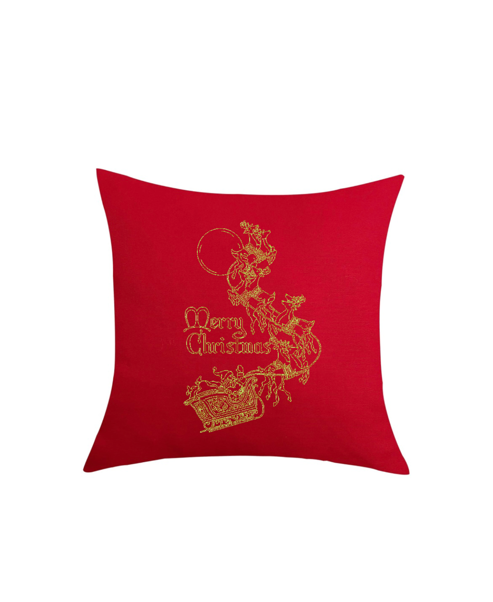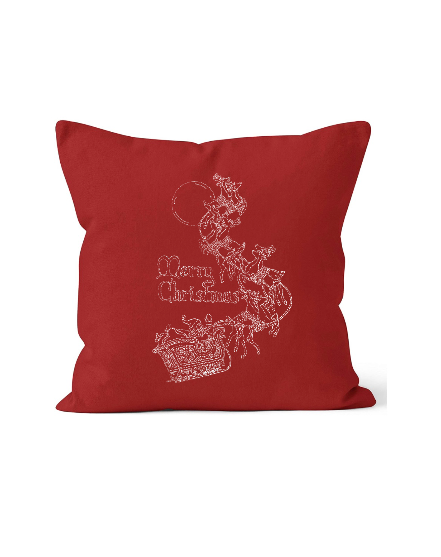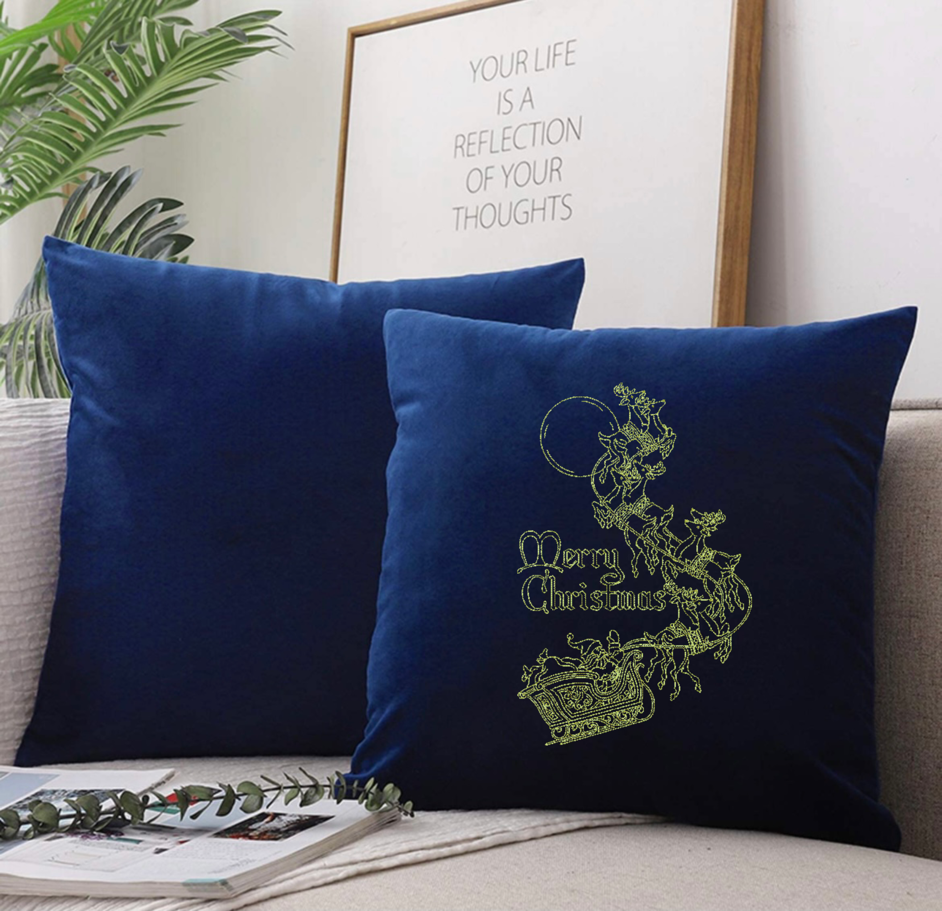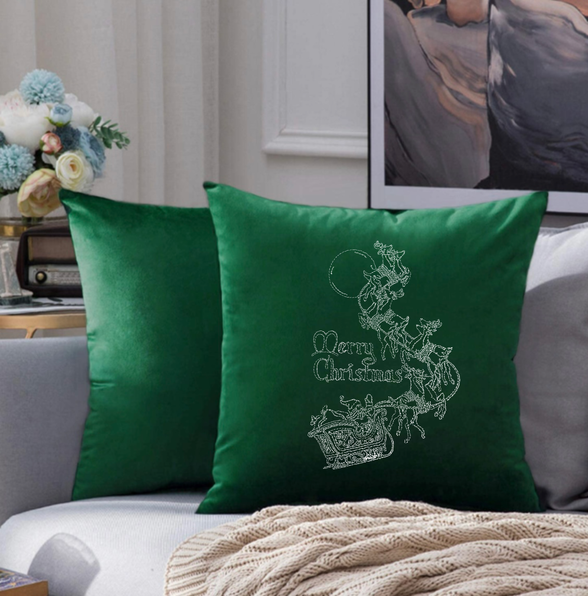 Santa’s Sleigh Ride Embroidered Throw Pillow Cover 18" x 18” Cotton Accent Pillow Cover Zip Closure.