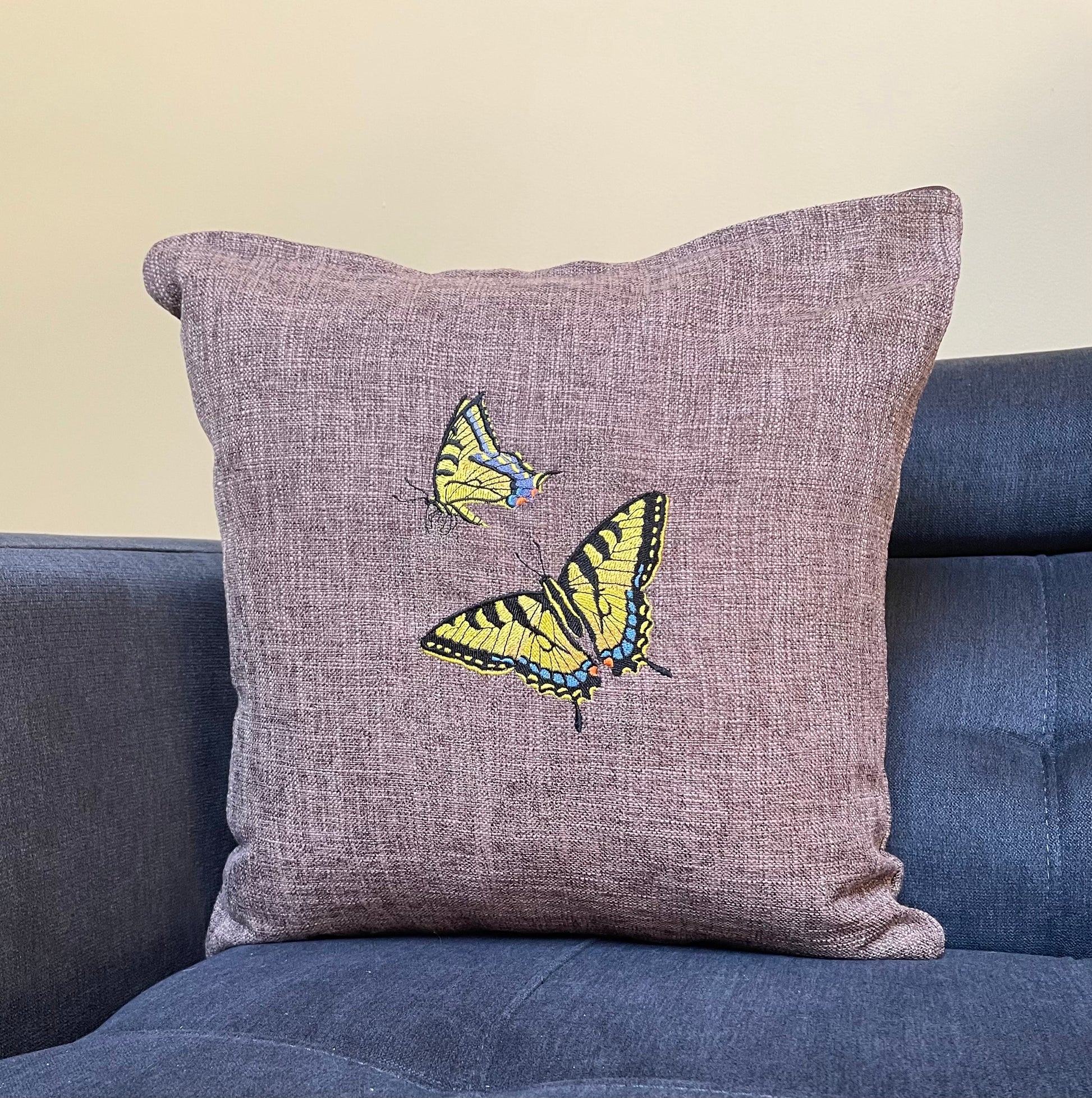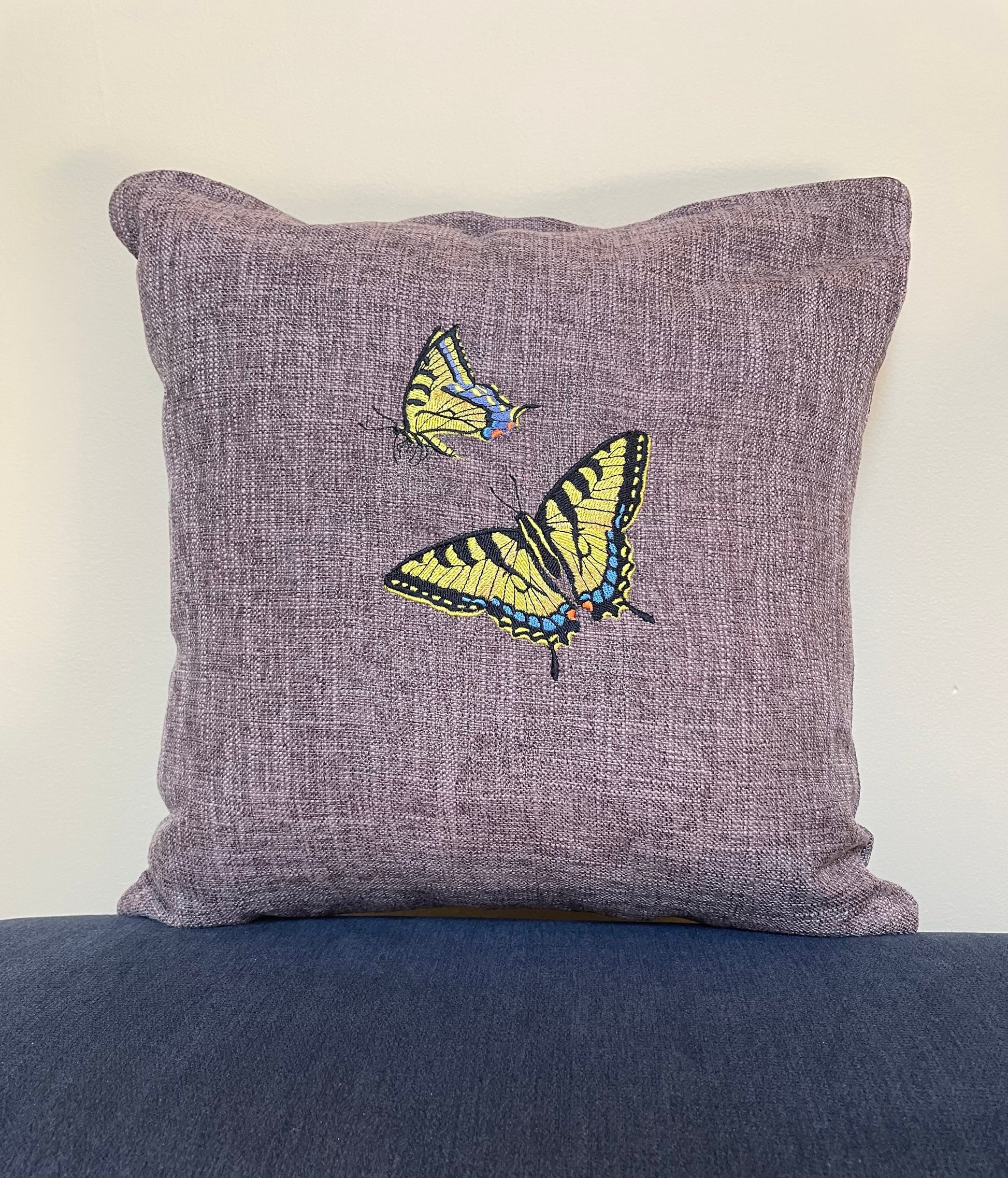 Update your living space with this beautiful embroidered tiger swallowtail butterflies throw pillow cover.