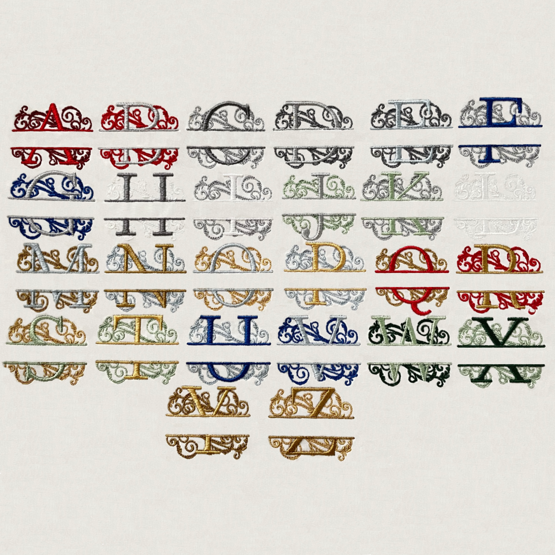 Embroidered Split Monogram Guest Hand Towel. Beautiful Monogram Letter With Scrolling And Personalization. Choice of Color