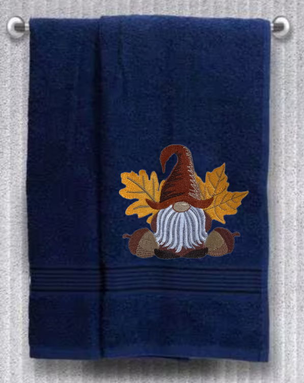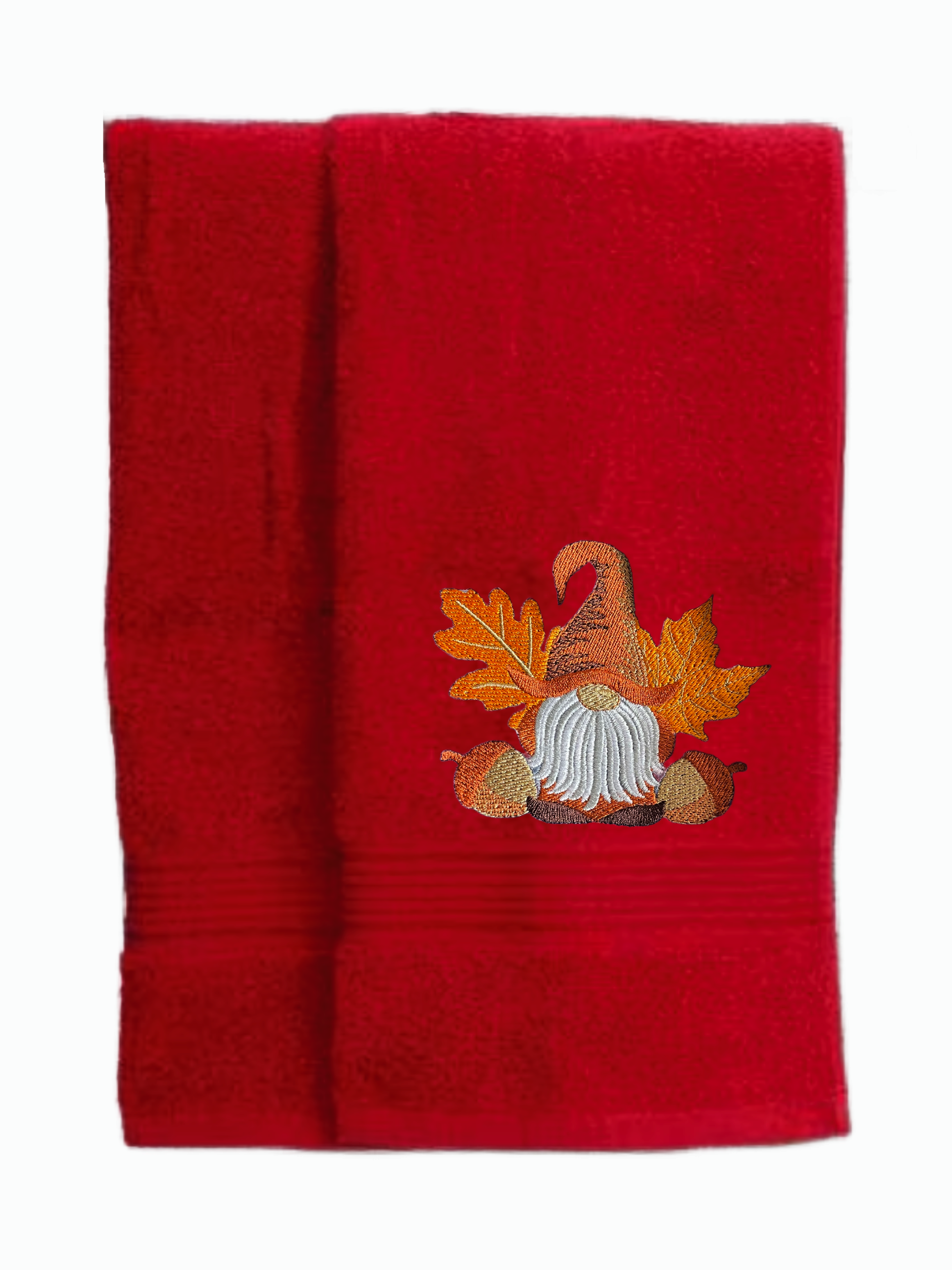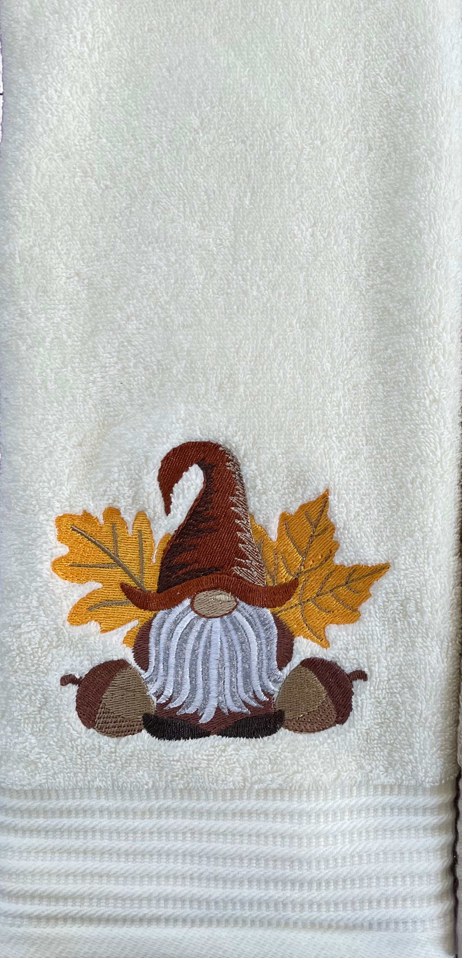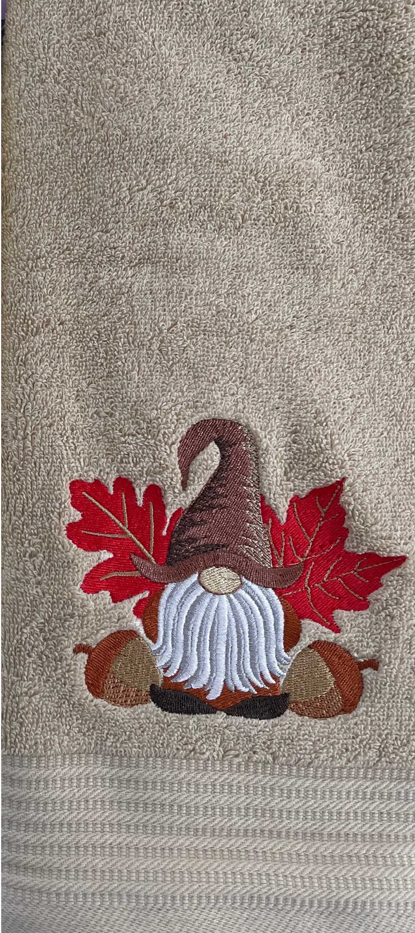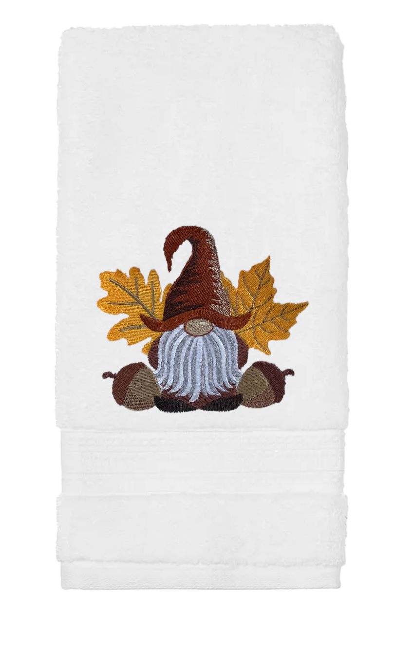 Fall Gnome Embroidered Bath Towels. 100% Cotton Hand or Fingertip Towel
