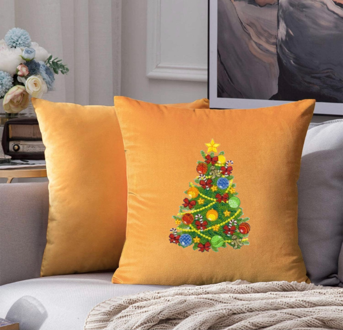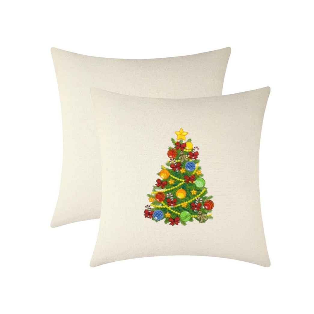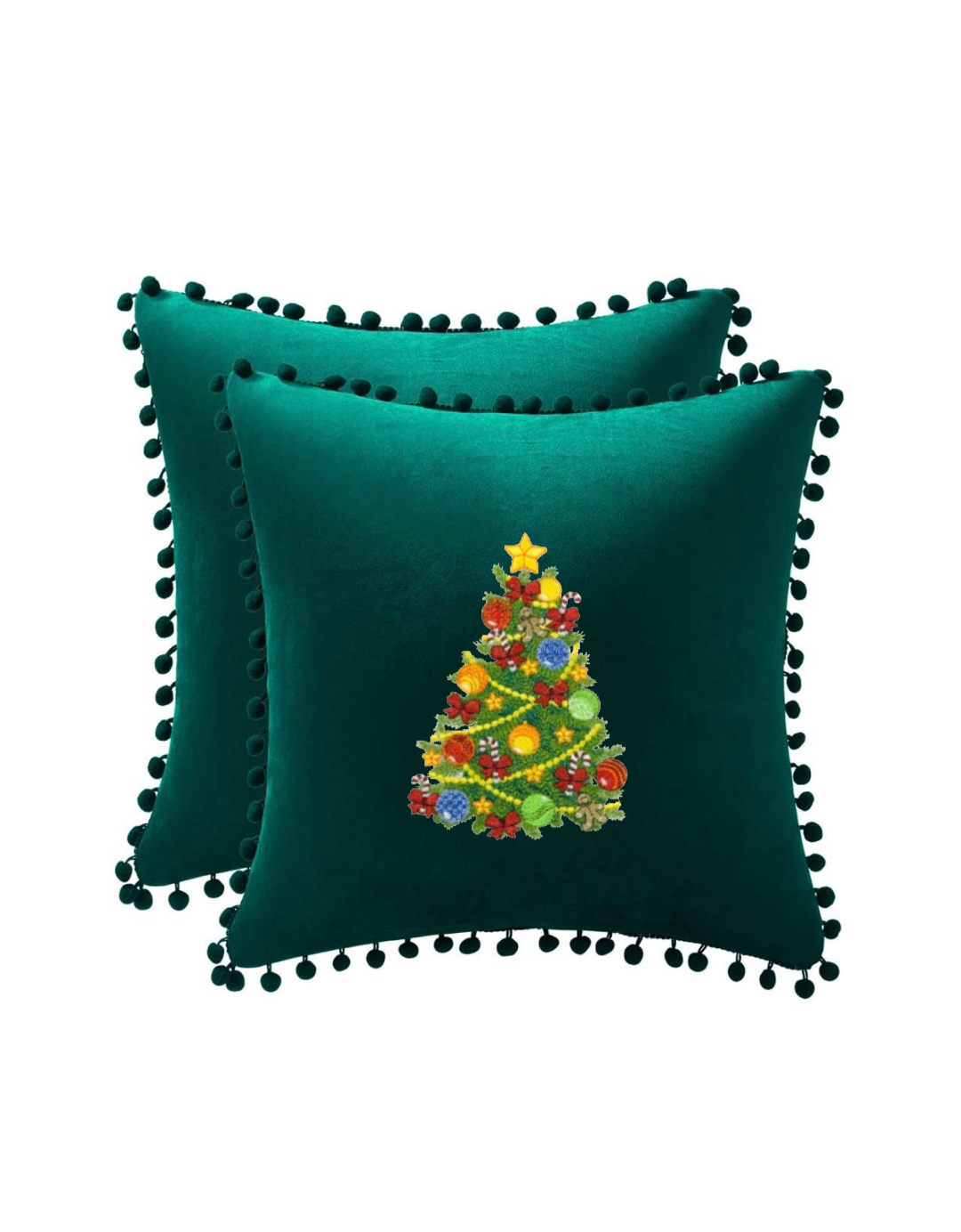 Christmas Tree Embroidered Throw Pillow Cover 18" x 18” Cotton or Velvet Accent Pillow Cover Zip Closure.
