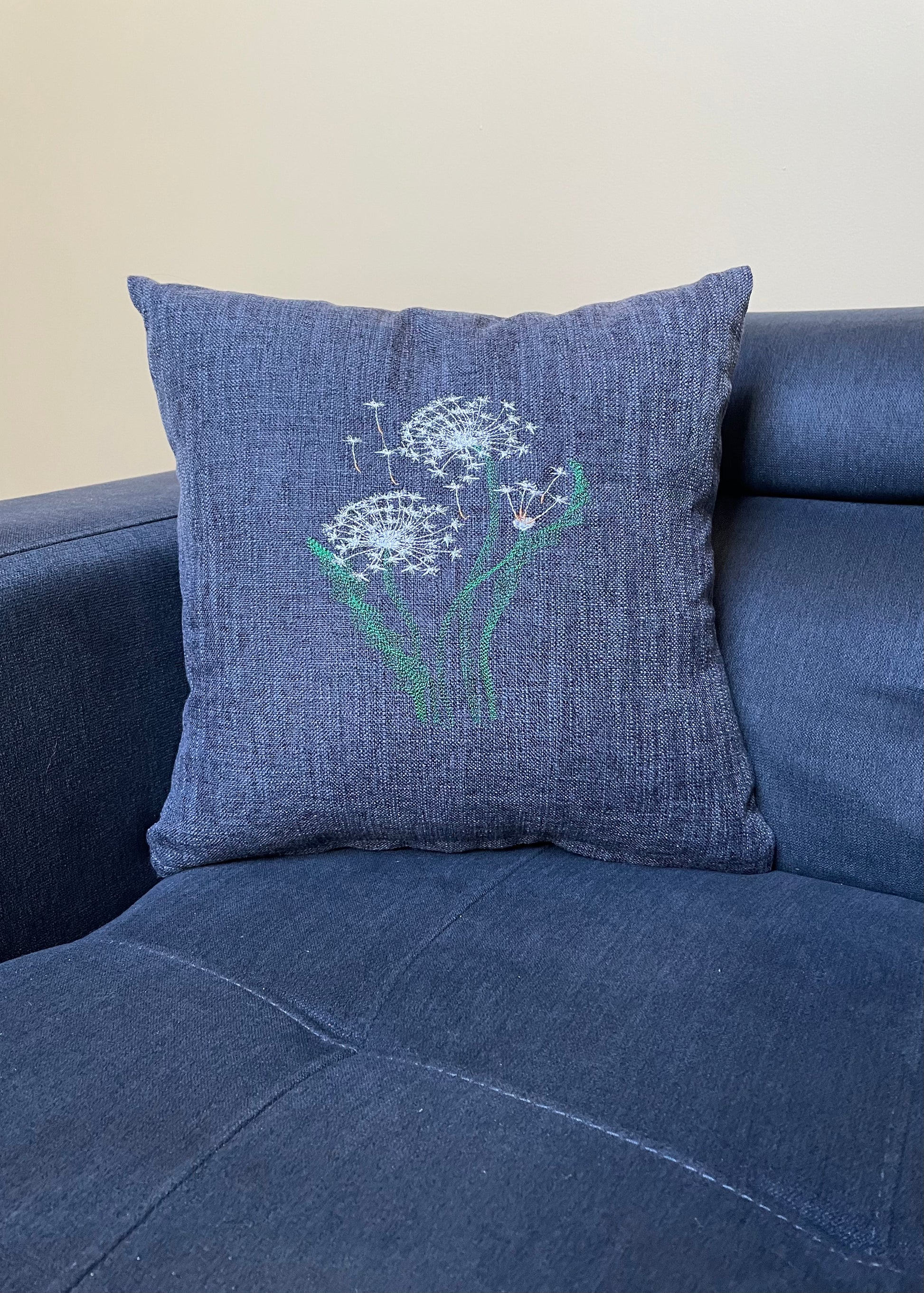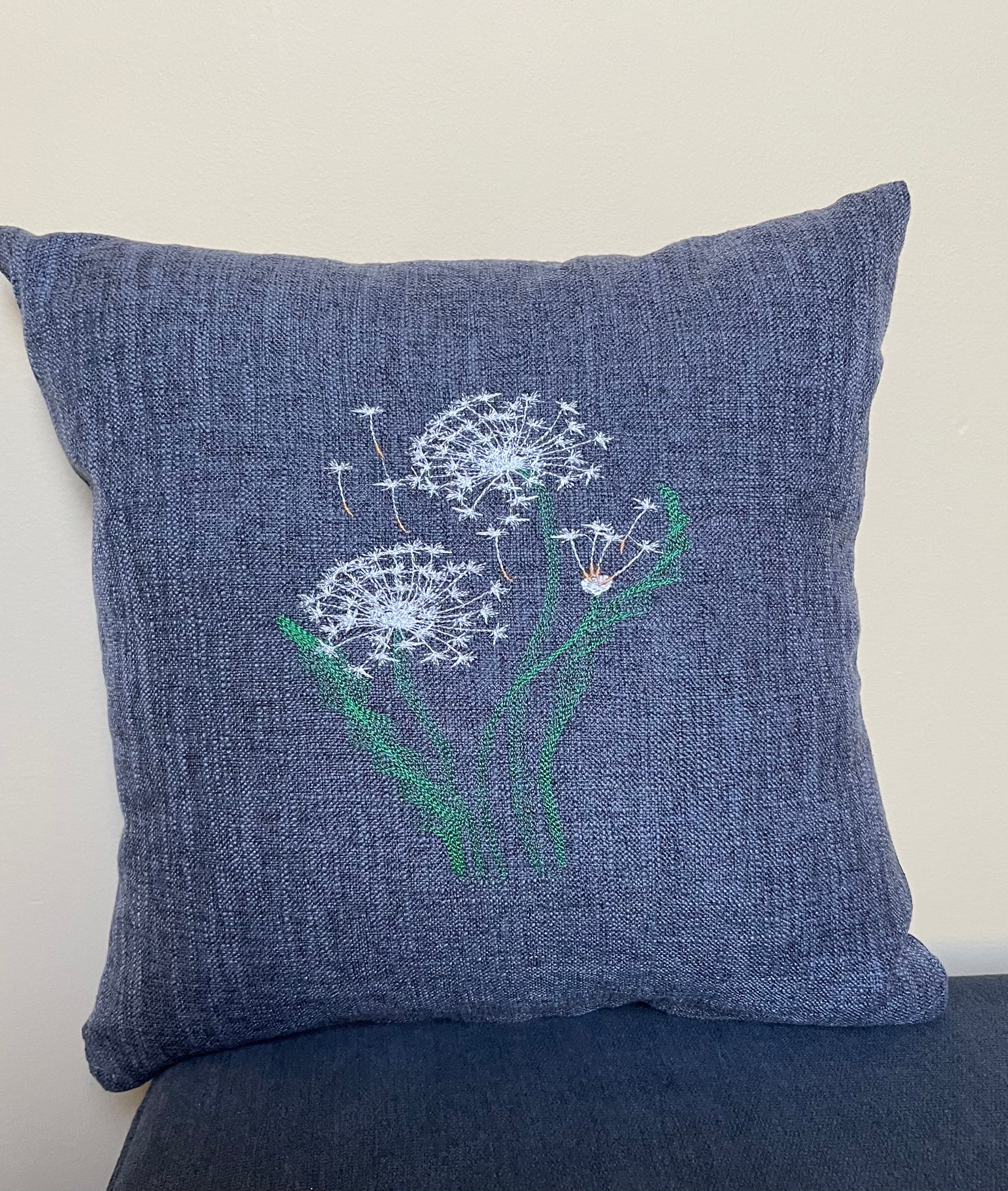 Update your living space with this simple and beautiful embroidered dandelion throw pillow cover.
