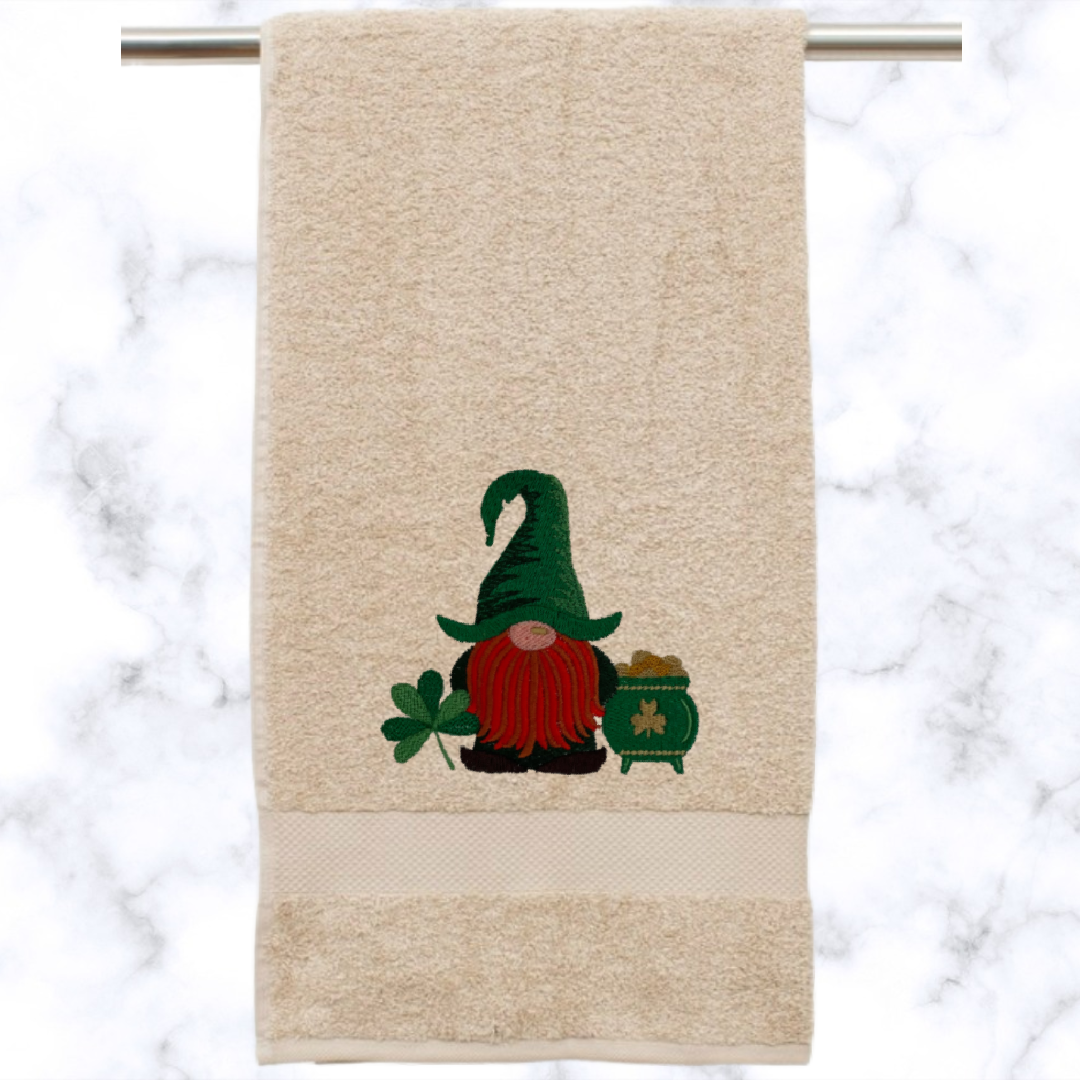 Embroidered Gnome St. Patrick's Day Towel. Choice of Gnome with Pot o' Gold or Beer