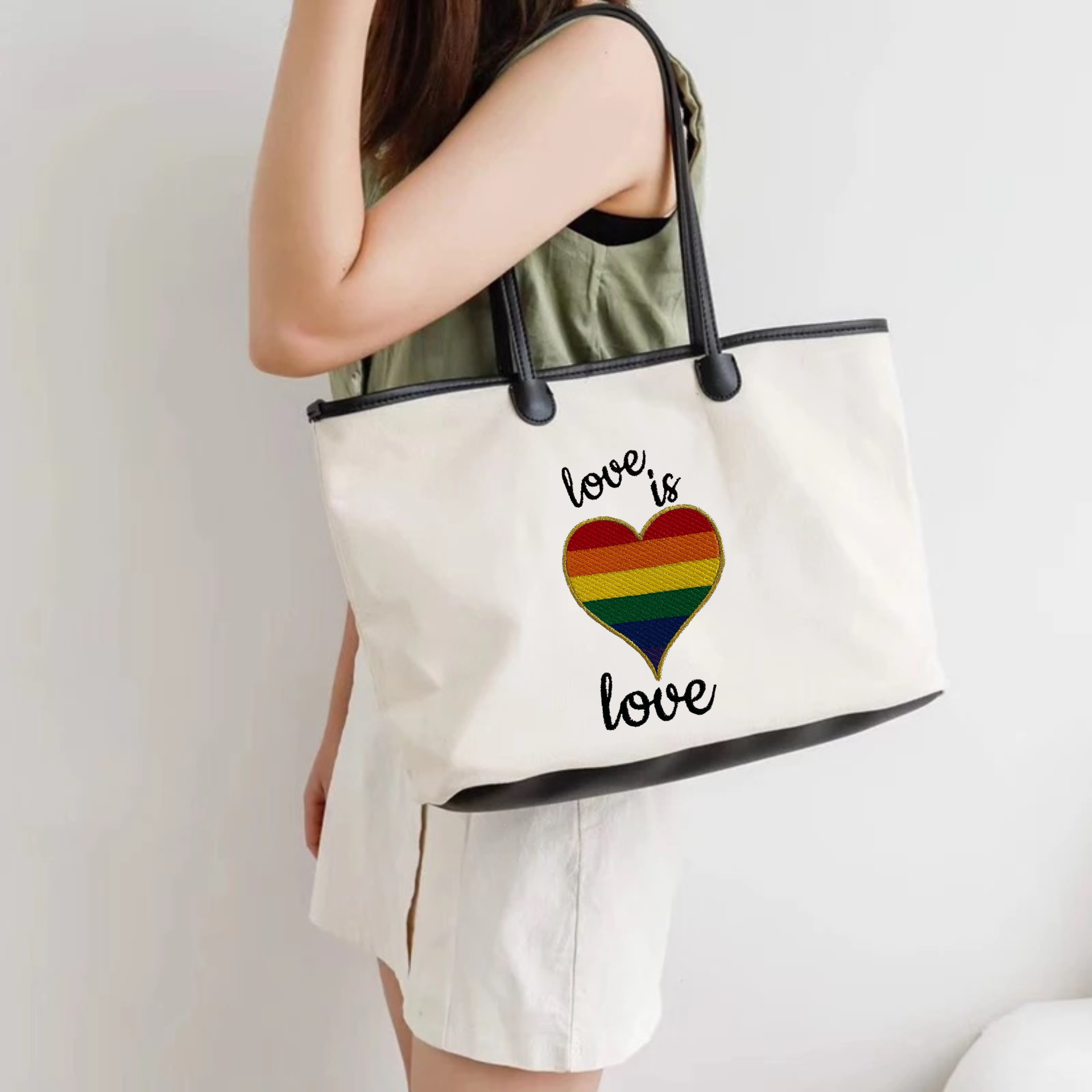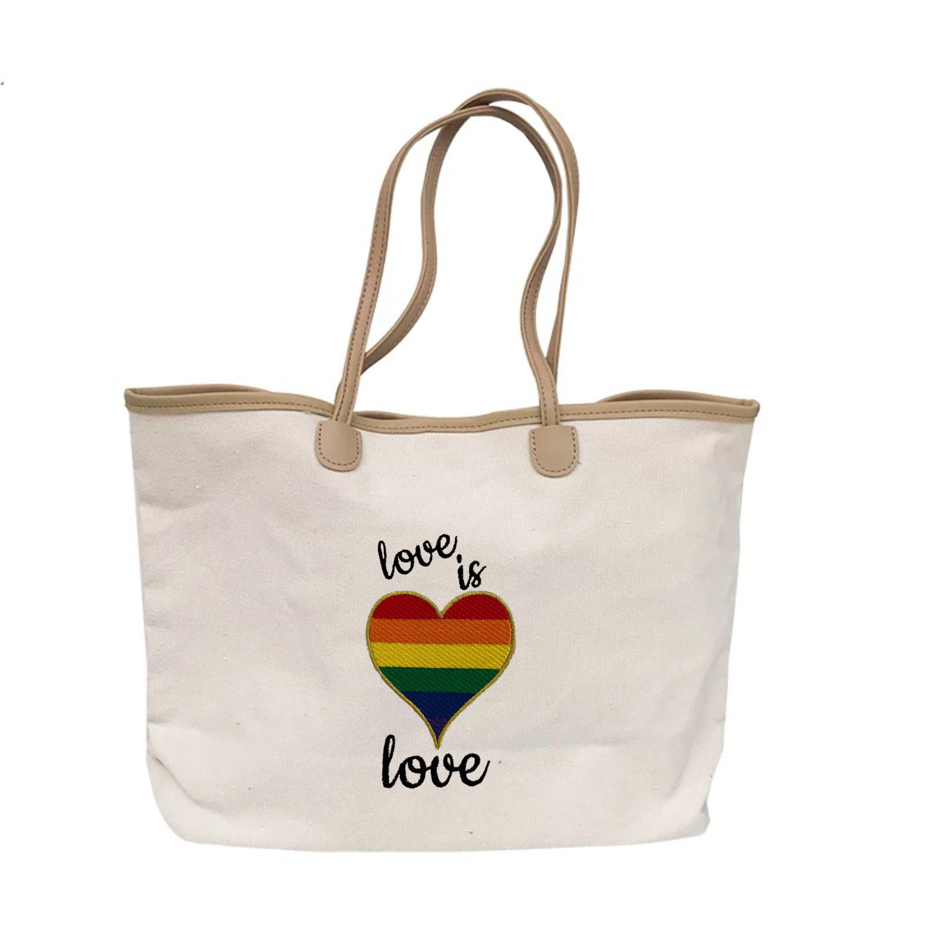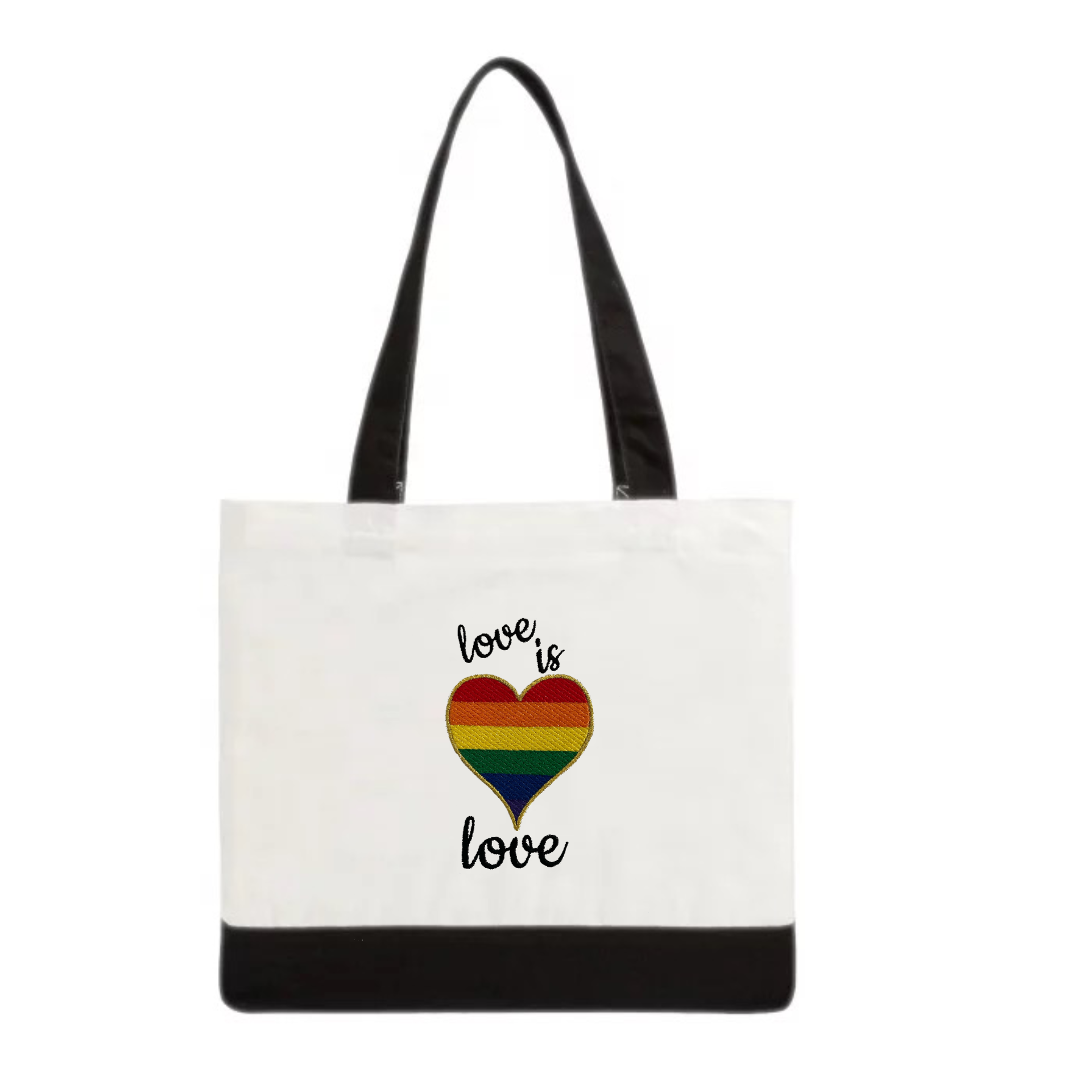 Rainbow Heart Love is Love Pride Embroidered Cotton Canvas Market Bag. Choice of 5 different bags