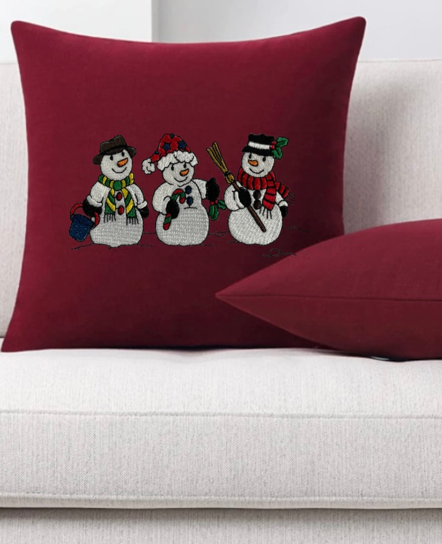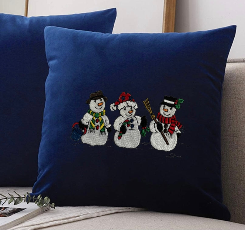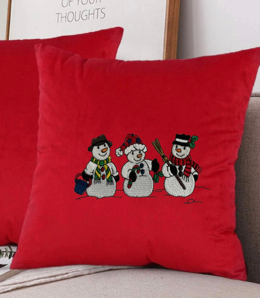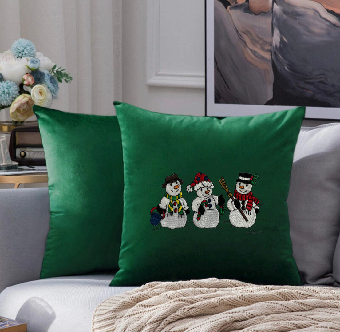 Snowmen Embroidered Throw Pillow Cover 18" x 18” Cotton or Velvet Accent Pillow Cover Zip Closure.